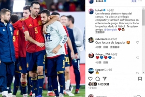 體育資訊9月27日訊 布斯克茨將在本賽季結(jié)束后退役,他在西班牙國家隊的隊友科克社媒發(fā)文致敬。