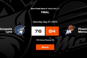 體育資訊9月27日訊 WNBA季后賽半決賽G3,水星84比76擊敗山貓,大比分2比1領先。