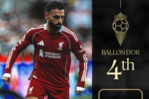 體育資訊09月27日訊 2025年金球獎,薩拉赫排名第四,今日金球獎官方公布了得分明細和100名記者的投票詳情。