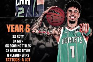 6年生涯:最佳新秀、0MVP、0得分王、0助攻王、季后賽0勝、文身更多了