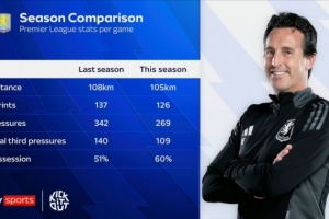 體育資訊9月28日訊 本賽季英超,維拉0勝3平2負積3分,位居聯賽第18位。日前,《天空體育》統計了維拉本賽季與上賽季的聯賽場均數據。