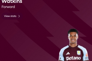 本場(chǎng)比賽沃特金斯在上半場(chǎng)為球隊(duì)先拔頭籌扳平比分,賽后他也當(dāng)選英超官方球迷票選全場(chǎng)最佳球員。