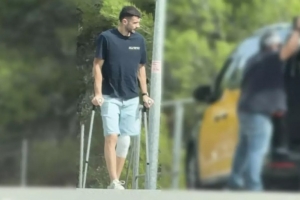 霍安-加西亞被拍到拄著拐杖現身,而能否趕得上10月對皇馬的國家德比,目前似乎非常困難。