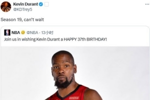 杜蘭特轉發(fā)了NBA官方的推文,并配文道:迫不及待開啟生涯第19個賽季了。