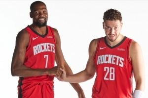 申京曬出了自己和杜蘭特身穿火箭球衣的照片,并寫道:“生日快樂兄弟。”