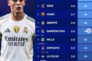 體育資訊9月30日訊 德轉盤點了本賽季西甲創造機會榜單,其中居勒爾共計21次創造機會居首,具體如下(場均數據+總數據):