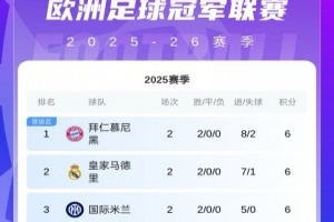 體育資訊10月1日訊 歐冠第2輪首日對陣結束,最新積分榜情況如上圖。目前6分領跑的是拜仁皇馬和國米三隊。