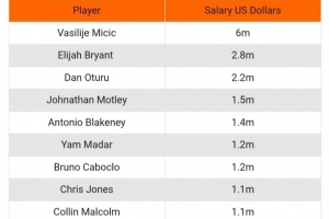 隊中有9人年薪超百萬美元,而最低的三位球員年薪僅12-15萬美元之間。