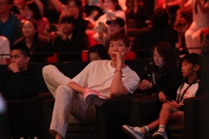 VIP!今天WTT中國大滿貫繼續在北京首鋼園進行,北京男籃球員周琦與陳盈駿來到現場觀看王楚欽林詩棟對陣瑞典組合的男雙比賽!