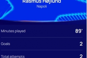 本場比賽霍伊倫梅開二度,2次射門進2球,賽后他也當選歐冠官方評選出的本場最佳球員。