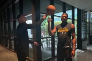 湖人向球員們發起了指尖轉球挑戰,里夫斯的轉球時間最長,東契奇搞怪破壞了八村塁的轉球。