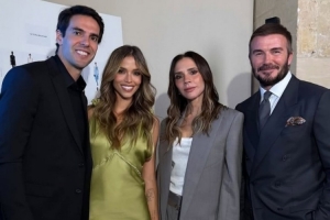 卡卡、貝克漢姆攜夫人出席活動,卡卡社媒曬出四人合照。