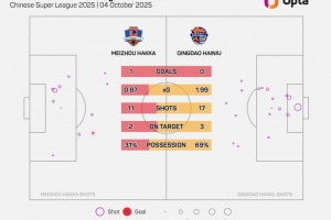 青島海牛本場比賽的控球率為69%,刷新球隊自2012年以來單場中超新高。