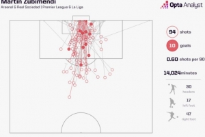 據統計,這是蘇維門迪在頂級聯賽生涯首次打進禁區外的遠射,他在為皇家社會和阿森納效力的比賽中94次射門打進10球,但是首次打進遠射。