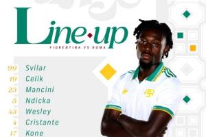 羅馬首發:99-斯維拉爾、19-切利克、23-曼奇尼、35-巴爾丹齊、5-恩迪卡、43-韋斯利、12-齊米卡斯、4-克里斯坦特、17-科內、18-蘇萊、9-多夫比克