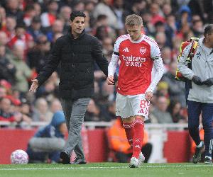 對陣西漢姆膝蓋與對方球員相撞,因傷被換下場,阿爾特塔賽后表示厄德高傷勢并不樂觀,阿森納確認球員左膝內側副韌帶受傷,因此退出挪威隊名單,尚未給出具體的恢復時間表。