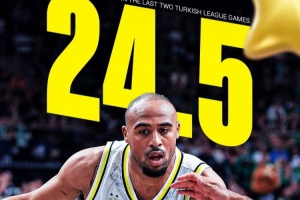 本場比賽,霍頓-塔克15投11中,拿到了25分6籃板1助攻的數據。前兩輪土超聯賽場均24.5分5籃板4助攻,其中他的得分排在聯賽第三。