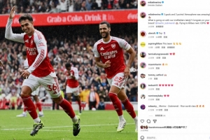 梅里諾賽后也在個人社媒曬出與蘇維門迪慶祝的照片,配文寫道:“3粒進球,拿下3分,現場氛圍太棒了!我們的中場球員最近都怎么了?!祝賀蘇維門迪梅開二度!下一站畢爾巴鄂,加油!”