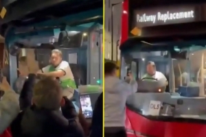 視頻顯示球迷們圍住公交,用口號嘲諷艾薩克,多人舉起手機對他拍攝。部分球迷還敲擊車身,并試圖打開駕駛員側車窗。身穿利物浦球衣的艾薩克坐在駕駛座上神情沮喪地注視著這一切。