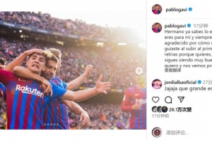 體育資訊10月9日訊 阿爾巴宣布將在本賽季結束后退役,巴薩中場加維社媒發文致敬。