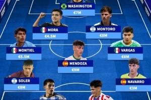 U20世界杯身價最高陣:總身價6080萬歐,莫拉、門多薩在列