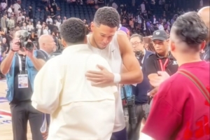 模仿布克走紅的網(wǎng)紅(CY布克??)在社媒上曬出與布克擁抱合影的瞬間,并寫(xiě)道:“我真的太幸福了、謝謝@NBA幫我圓夢(mèng)?!?/p>