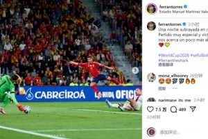 此役是費(fèi)蘭-托雷斯為西班牙隊(duì)出戰(zhàn)的第50場比賽,他在社交媒體上曬出比賽照片,配文:“值得銘記的夜晚,為西班牙出戰(zhàn)50場,這是一場非常特別的比賽,勝利讓我們距離世界杯更近一步。”