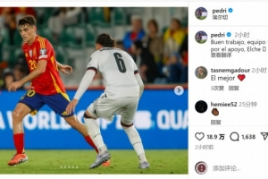 佩德里社媒曬出比賽照片,配文:“干得漂亮,隊友們!感謝埃爾切球迷的支持(此役在埃爾切進行)?!?/p>