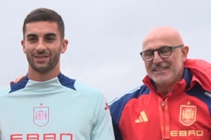 費蘭-托雷斯達成為西班牙隊出戰50場比賽里程碑,西班牙隊昨日訓練之前向他頒發了50場紀念球衣,全隊與費蘭合影表示祝賀。
