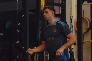 馬丁內斯在室內訓練間隙跳舞,似乎在琢磨新的慶祝舞步,阿根廷隊社媒曬出視頻,配文:“認真訓練又樂在其中。”