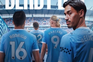 曼城官推也曬出海報為德比大戰預熱,海報中是賴因德斯、哈蘭德、羅德里以及劉易斯即將步入球場的背影。