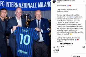 因凡蒂諾寫道:我這次的經歷可以用“回家”來形容。非常榮幸能訪問國米總部,并與俱樂部CEO馬洛塔、副主席兼國際足壇傳奇薩內蒂、首席營收官喬治-里奇以及首席參謀馬克西米里亞諾-卡塔內塞會面。我們討論了許多重要議題,包括球員福祉、國際比賽日賽程以及足球的未來等等。參觀俱樂部榮譽室是一次深受觸動的經歷!