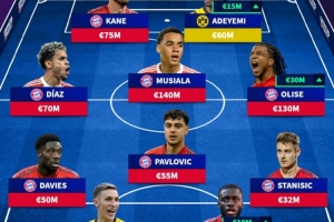 中場:路易斯-迪亞斯(拜仁慕尼黑,7000萬歐元)、帕夫洛維奇(拜仁慕尼黑,5500萬歐元)、穆西亞拉(拜仁慕尼黑,1.4億歐元)、奧利塞(拜仁慕尼黑,1.3億歐元)