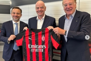 因凡蒂諾在社交媒體上寫道:“很高興與AC米蘭主席斯卡羅尼以及CEO富拉尼會面,一起探討了足球、國際賽事以及基礎設施等話題。”