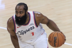 快船球星哈登上半場表現不佳,不僅投籃頻頻打鐵,僅1次罰球還沒有命中,在場上失誤也比較多。