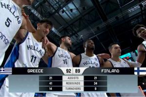 本場(chǎng)比賽,希臘依靠當(dāng)家球星揚(yáng)尼斯-阿德托昆博的強(qiáng)勢(shì)的表現(xiàn)全場(chǎng)壓制芬蘭,從未落后!