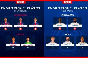 體育資訊10月17日訊 國際比賽日結(jié)束,聯(lián)賽回歸。本月月底西班牙國家德比便將打響,今日馬卡盤點了國家德比可能傷缺的人員。