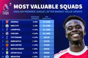 體育資訊10月17日訊 德國轉(zhuǎn)會市場今天更新了英超球員的身價,最新的俱樂部身價榜中,阿森納和曼城均遭下跌,但仍占據(jù)前二,利物浦、切爾西破10億歐分列第三第四。