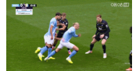 比賽第23分鐘,曼城開出角球,奧布萊恩解圍結果頂向自家球門,擊中橫梁后彈出,場上比分曼城0-0埃弗頓。
