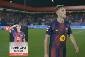 體育資訊9月15日訊 西甲第4輪,巴薩主場6-0擊敗瓦倫西亞,費爾明此役代表巴薩首發出戰,打進2球。