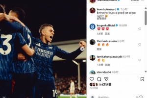 體育資訊10月19日訊 在本輪英超,阿森納1-0小勝富勒姆,特羅薩德利用角球機(jī)會破門得分。