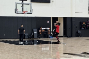 體育資訊10月21日訊 開拓者隨隊(duì)記者Sean Highkin曬照,開拓者后衛(wèi)亨德森訓(xùn)練后單獨(dú)進(jìn)行了投籃練習(xí),楊瀚森的翻譯劉禹鋮(克里斯)在旁邊幫他撿籃板。
