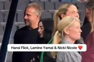 亞馬爾的女友妮基-妮可來到現場,為男友助威,巴薩主帥弗里克賽后與亞馬爾、妮基-妮可交談,三人都面帶笑容。