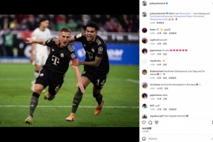 本場比賽基米希打入賽季首球,他也在社媒曬出慶祝照,配文調侃道:“凱恩小心了,我要追上你了!”