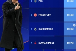 體育資訊9月16日訊 本賽季歐冠即將打響,德轉也根據聯賽階段對手平均身價盤點了各球隊賽程難易程度,其中巴黎對手的平均身價最高,具體如下: