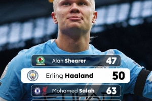 在曼城3-0曼聯的比賽中,哈蘭德梅開二度,完成英超主場50球里程碑。英超歷史上,只有希勒主場50球的效率更高。