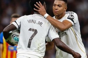 本場比賽上半場皇馬兩度獲得點球機會,姆巴佩先是主罰命中,第二球維尼修斯主罰被撲出。賽后維尼修斯也在社媒曬出兩人擁抱合照,配文寫道:“對你來說這很容易??”