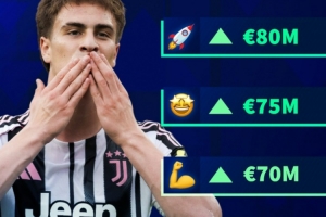 20歲的伊爾迪茲目前身價5000萬歐,德轉給出的下次更新身價分別有6000萬歐、7000萬歐、7500萬歐以及8000萬歐。