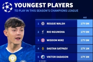 體育資訊11月5日訊 本賽季,歐冠賽場上一批年輕球員有望嶄露頭角,德國轉會市場盤點了各隊在歐冠中最年輕球員排行。