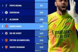 體育資訊11月6日訊 阿森納在歐冠客場3-0擊敗布拉格斯拉維亞,拉亞完成了阿森納生涯的第50場零封,共計用了110場比賽,排名英超俱樂部門將50場零封第五快。